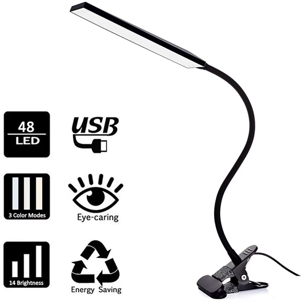 5W LED Clip on Desk Lamp with 3 Modes 11 Brightness 2M Cable Dimmer 14 Levels Clamp Table Lamp