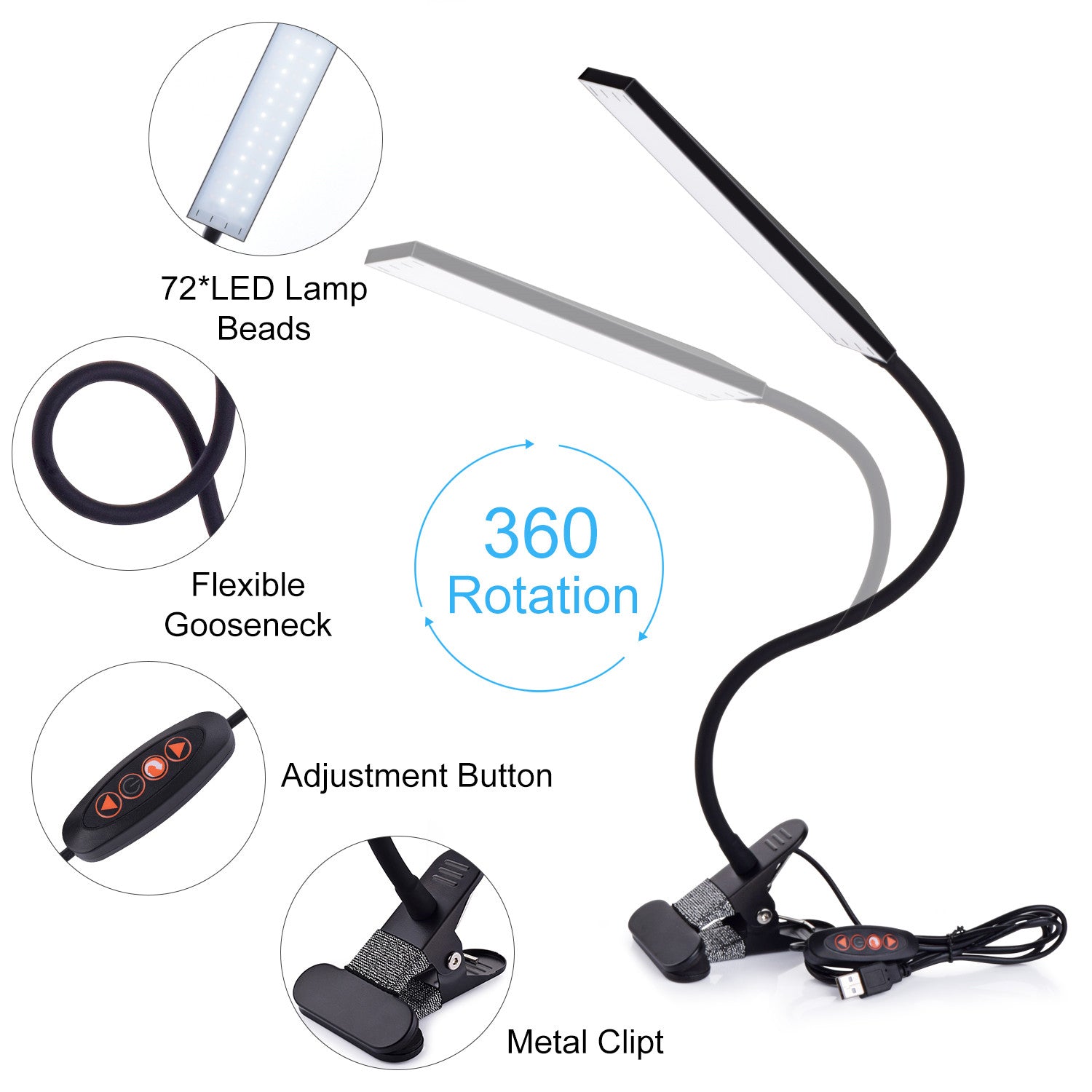 Flexible swan neck-like arm to adjust to any direction